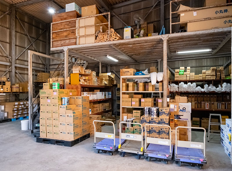 商品はあらゆる現場に対応できるよう、防水材はもちろん、シーリング材や外壁補修材など、様々な物を取り揃えています。